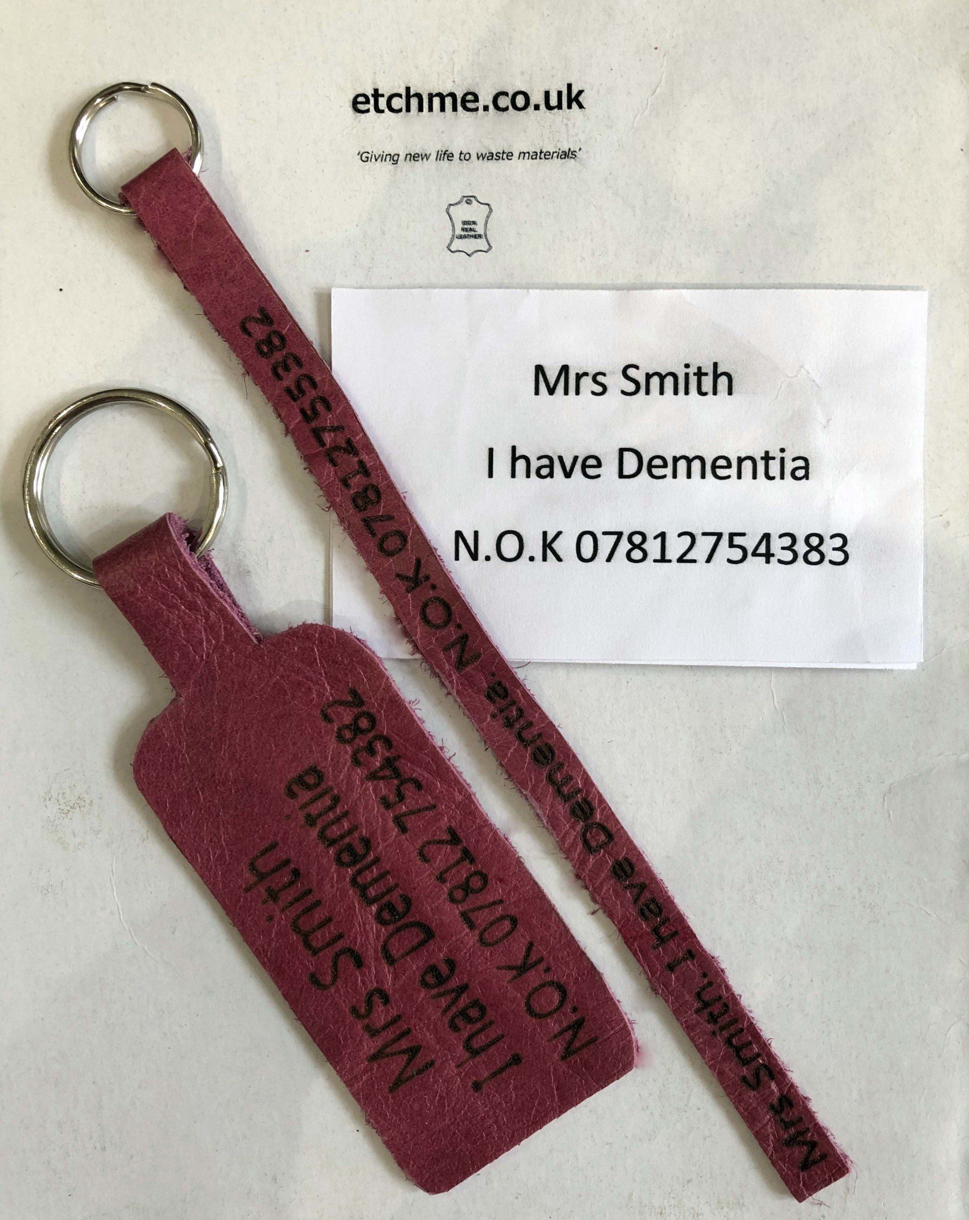 coat tag, keyring and contact card for wallet - ideal for dymentia care